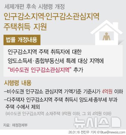 [그래픽] 4억 이하 비수도권 인구감소관심지역까지 확대[세법시행령]