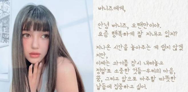 이어 다니엘은 "고맙고, 사랑하고, 또 고마워요 버니즈. 언제나 함께 해줘서"라는 말로 편지를 마쳤다.