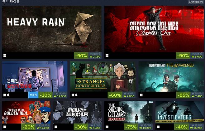 이번 행사는 오는 19일까지 진행되며 추리 장르 게임을 할인된 가격에 만나볼 수 있는데요.