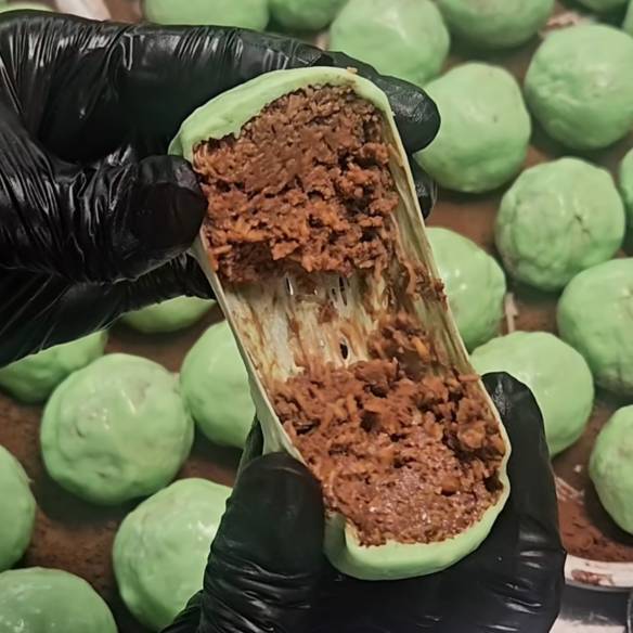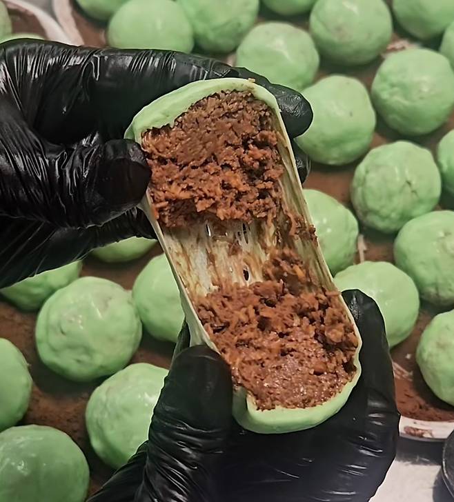 초코 하면 빠질수 없는 취향계의 절대강자가 있습니다. 바로 민트초코죠. 호불호는 무척 갈리는 편이지만 한번 입덕하면 ’민초단‘을 자처하게 됩니다. 동명의 브랜드인 ’민초단‘에서 그런 민초러버들을 위한 새로운 두쫀쿠를 가지고 왔습니다. 민트초코 두쫀쿠는 우선 색깔부터 민트색으로 존재감을 뿜어내고요. 피스타치오 대신 누텔라 초콜릿을 넣어 민트 맛과의 조화를 이뤄냈어요. 그러면서도 콰삭한 식감의 카다이프 면을 잊지 않았죠. 달콤하고 상쾌한 맛이 무한 반복되며 질리지 않는다는 설명입니다. 당연하게도 수많은 민초단들에 의해 연일 조기 품절을 기록하며 엄청난 저력을 보이고 있습니다. 피스타치오가 빠졌는데 어떻게 두쫀쿠냐고 하는 시각도 있지만, 민초에 푹 빠진 민초단의 귀에는 들리지 않을 것 같네요.
