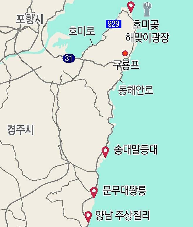 지난해 아시아태평양경제협력체(APEC) 정상회의 무렵 만난 경상북도 분들이 바다 정원 얘기를 꺼냈다. 지난해 4월 경주 포항 영덕 울진 일원의 ‘경북 동해안 지질공원’이 유네스코 세계지질공원으로 지정된 걸 두고 하는 말이었다. 경주 양남 주상절리에서부터 포항 호미곶까지 동해안을 따라 올라가는 1박 2일 여행은 그렇게 시작됐다.
