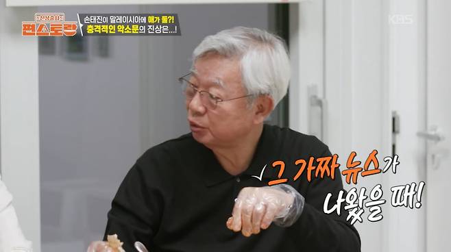 손태진은 "말레이시아 백화점 사장 딸과 결혼해 애가 둘이라더라"며 "부모님이 말레이시아에 사셨다. 사이사이에 사실을 섞으니 사람들이 가짜뉴스를 믿더라"고 토로했다. 아버지는 "가짜뉴스 보고 '어유, 그랬으면 정말 좋겠다' 싶더라. '애 둘' 있는 거 너무 좋겠다"라며 아들의 결혼과 손주를 바라 웃음을 자아냈다.
