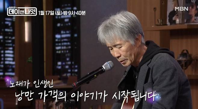 [TV리포트=정대진 기자] 가수 최백호가 방송에 등장해 좀처럼 듣기 힘든 그의 얘기를 풀어간다. 오는 17일 방송되는 MBN 토크쇼 '김주하의 데이앤나잇' 8회에서는 데뷔 50년 차 가수 최백호가 출연해 숨겨놓은 입담을 발산한다. 진행자 김주하는 "대한민국이 사랑하는 음유시인"이라며 최백호를 소개한다.