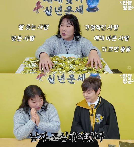 지난 16일 김민경의 유튜브 채널에는 신년 운세를 주제로 한 영상이 공개됐다. 영상에서 김민경은 마술사 최현우와 함께 타로카드를 통해 연애운을 점쳤다.