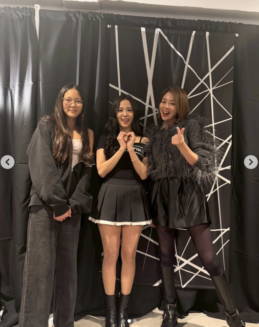 공개된 사진에는 도쿄돔에서 열린 블랙핑크 공연 현장을 찾은 추사랑이 어머니 야노 시호, 블랙핑크 멤버 지수와 함께 나란히 서서 포즈를 취하고 있는 모습이 담겼다.