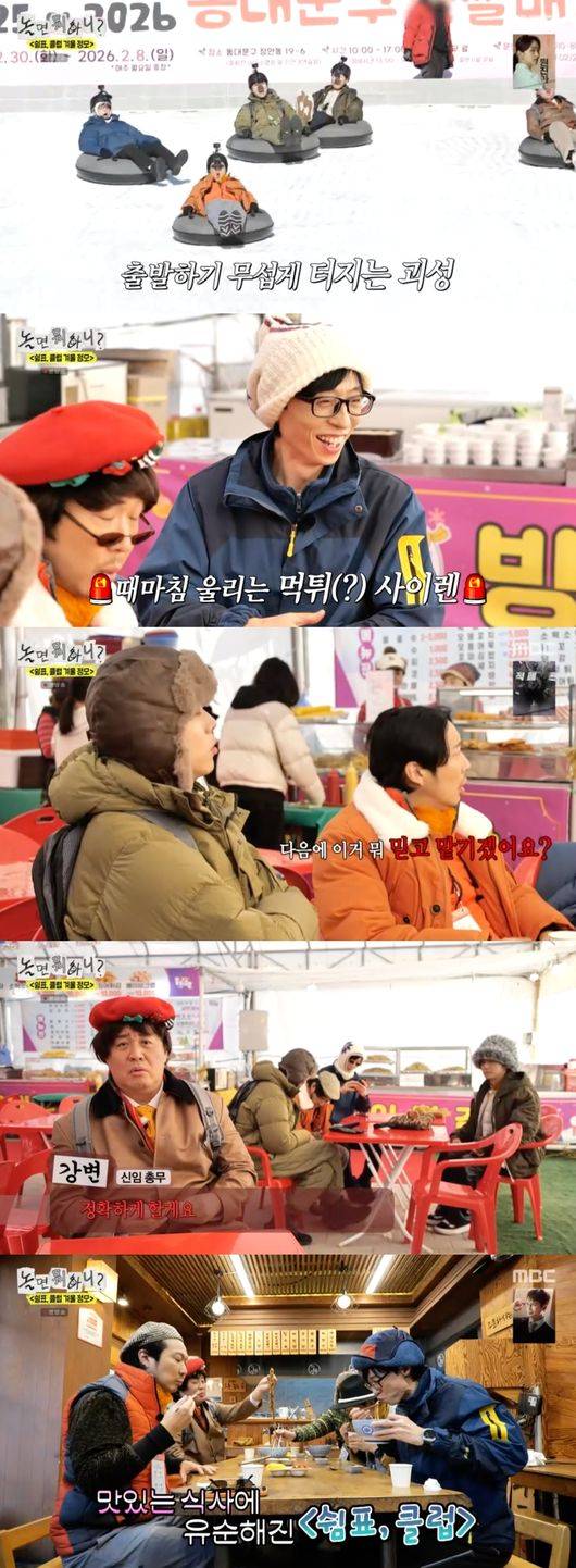 먼저 멤버들은 겨울 간식을 먹으러 출발했다. 유재석은 “5만 원에 이런 여행 하는 거 쉽지 않다. 진짜 유명한데다. 벌써 줄 서있을 수도 있다. 가성비가 기가 막히다”고 자신감을 드러냈다.