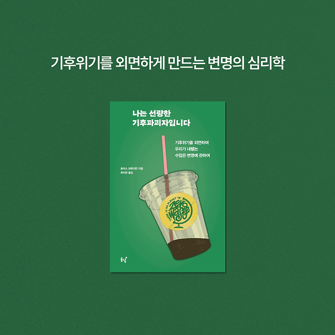 우리가 '착한 행동'을 했다는 사실 자체가 더 큰 기후파괴적 선택을 눈감아주는 심리적 장치로 작동한다는 분석이다. 책은 이런 인지 편향과 방어기제를 날카롭지만 이해하기 쉬운 언어로 풀어낸다.
