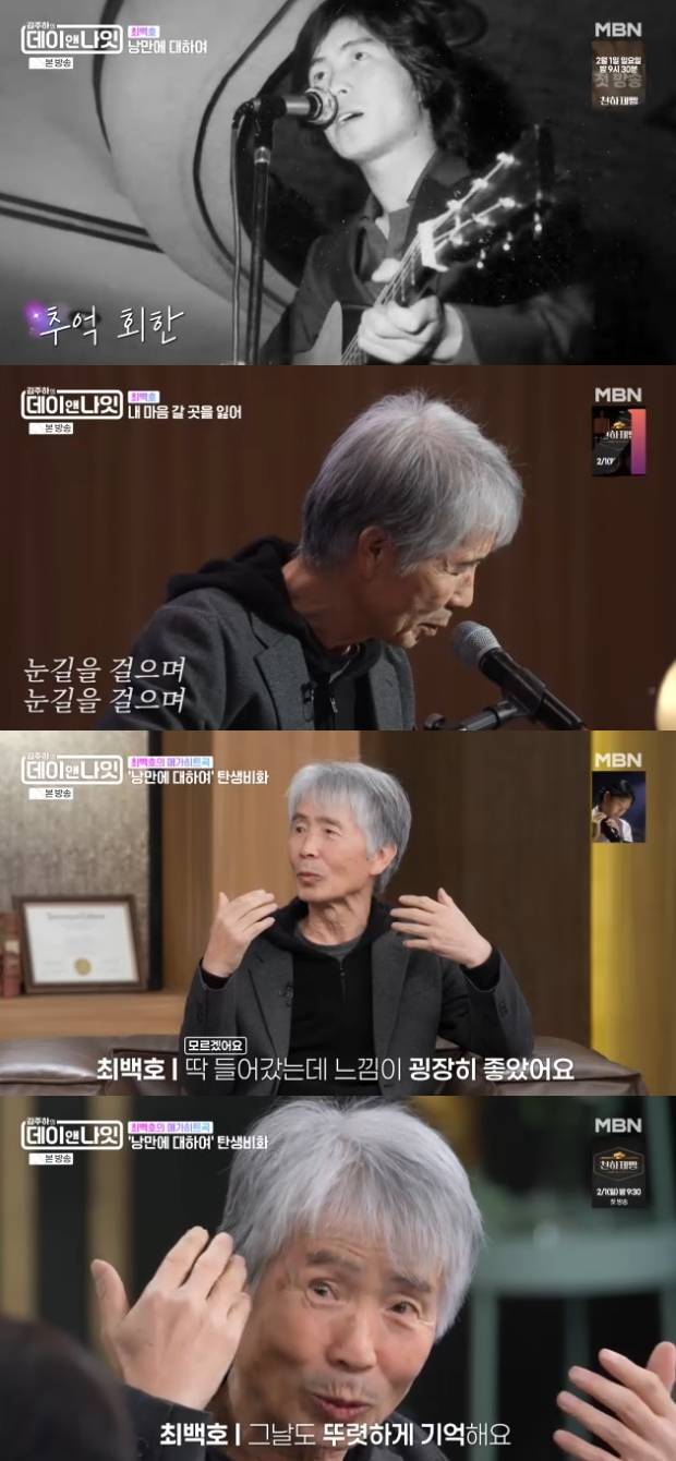 지난 17일 방송된 MBN 교양프로그램 '김주하의 데이 앤 나잇'에는 데뷔 50년 차 가수 최백호가 게스트로 출연해 삶과 음악에 대한 이야기를 전했다.