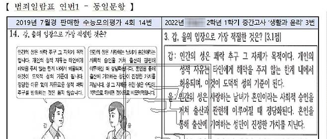 그런데 이 교사는 시대인재 측에 판매한 문항을 2학년 중간·기말 고사에서 '생활과 윤리' 과목 시험 문제로 그대로 내거나, 5지선다 문항의 순서를 바꾸는 등 살짝 변형해 출제한 것으로 드러났습니다.