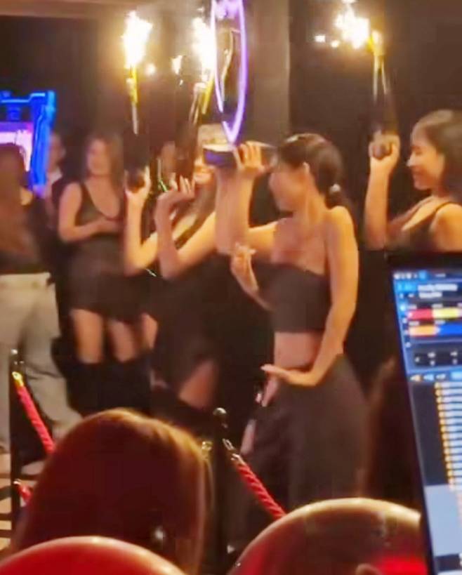 샴페인 병에 불꽃 연출이 더해지며 클럽 특유의 화려한 분위기가 연출된 점도 눈길을 끌었다.