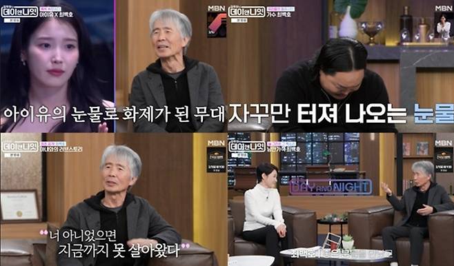 반면 최백호는 축하 무대 중 아이유의 눈물로 화제를 모은 ‘폭싹 속았수다’ OST가 사실은 자신의 체질은 아니었기에 힘들었다는 비화를 전했다. 여기에 최백호의 골수팬 조째즈는 최백호에 대한 존경심을 담은 ‘찰나’를 불렀고, 최백호로부터 “정말로 좋았어요. 나도 저렇게 부를 걸 하는 생각이 들었어요”라는 극찬을 듣자 감동에 겨워 오열했다.