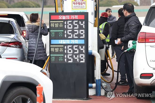 (서울=연합뉴스) 강민지 기자 = 주유소 휘발유와 경유 주간 평균 가격이 6주 연속 하락했다. 한국석유공사 유가정보시스템 오피넷에 따르면 1월 둘째 주(11∼15일) 전국 주유소 휘발유 평균 판매가는 지난주보다 L당 14.5원 내린 1천706.3원이었다. 경유 평균 판매 가격은 전주 대비 18.1원 하락한 1천601.7원을 기록했다. 사진은 18일 서울의 한 주유소 모습. 2026.1.18