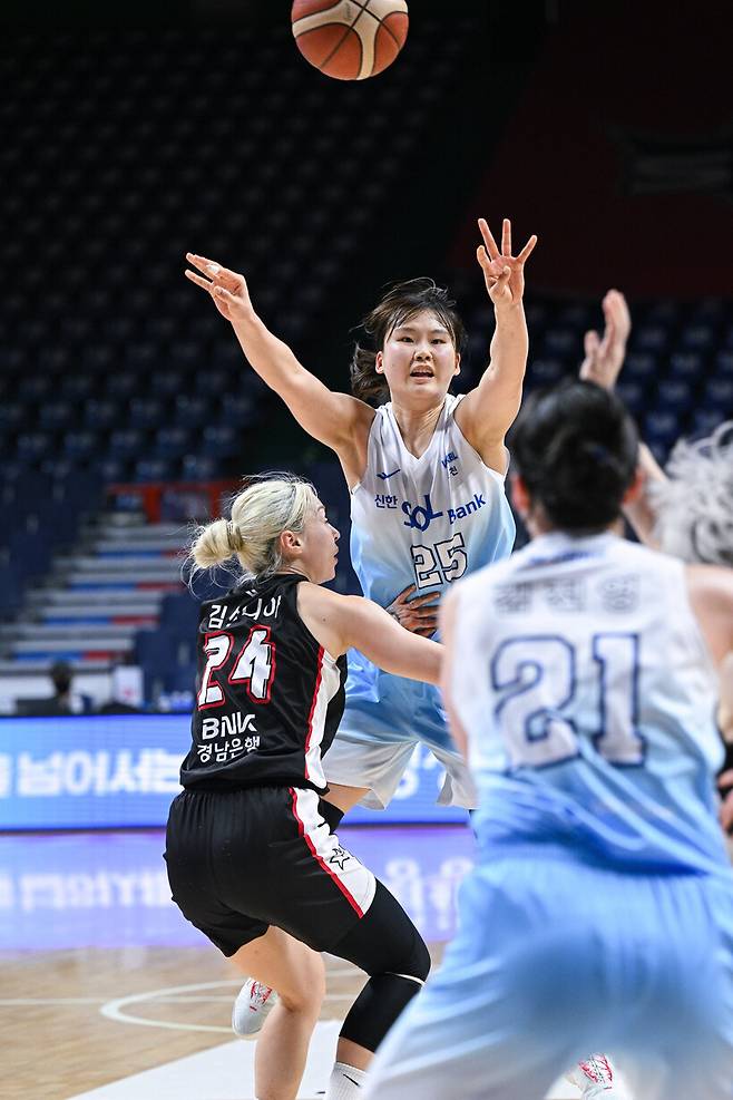 인천 신한은행은 18일 부산사직체육관에서 열린 BNK금융 2025~2026 여자프로농구 부산 BNK썸과의 맞대결에서 85-79로 승리했다.
