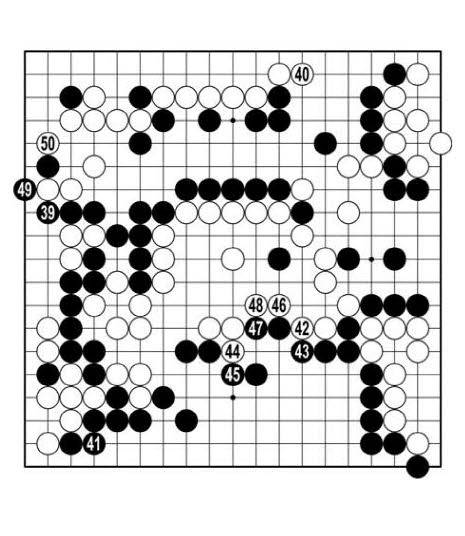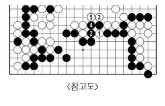 백이 8집 넘게 앞서 있다. 신진서는 정확하게 큰 자리를 차례차례 차지한다. 구경꾼은 백46이 아직 놓이지 않았을 때 <참고도> 1에 끊는 수를 생각했다. 실전과 견주면 백돌을 하나 보태준 셈이니 2집 손해가 된다.
