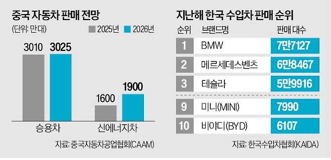 18일 외신 등에 따르면 중국자동차공업협회(CAAM)는 지난 14일 발표한 ‘2026년 중국 자동차 시장 전망’ 보고서에서 올해 자국 내 승용차 판매량이 3025만 대로, 지난해(3010만 대)보다 0.5% 늘어나는 데 그칠 것으로 내다봤다. 판매량이 9.4% 증가한 지난해와 비교하면 판매 증가폭은 제로에 가깝다.