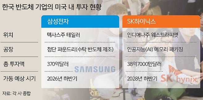 대만의 ‘통 큰 베팅’은 한국 기업들엔 어깨를 짓누르는 부담으로 다가온다. 현재 삼성전자(텍사스주 테일러)와 SK하이닉스(인디애나주 패키징 공장)가 확정한 대미 직접 투자 규모는 약 408억7000만달러(60조원) 수준이다. TSMC가 주도하는 대만 기업들의 직접 투자 규모에 견주면 턱없이 부족하다. 게다가 추가 투자 여력이 마땅치도 않은데 미국이 대만 모델을 한국과의 협상 기준점으로 삼을 경우 난감해질 수밖에 없다. 삼성과 SK는 사활을 걸고 이미 국내에 천문학적 투자를 진행 중이다. SK하이닉스는 용인 반도체 산업단지(클러스터) 조성에 600조원을 투입하고, 삼성전자도 용인 시스템반도체 클러스터(360조원)와 평택 P5 라인(60조원), 기흥 차세대 연구개발(R&D) 단지(20조원) 등에 막대한 자금을 쏟아부어야 한다. 두 기업은 국내 반도체 생태계 강화와 대미 투자 요구를 동시에 충족시켜야 하는 ‘이중고’에 시달리게 된 셈이다.