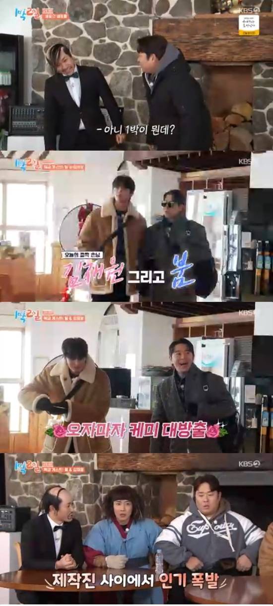김재원은 케이블카를 타고 이동하면서 주변에 친한 지인들한테 '1박 2일' 출연 소식을 알렸는데 괜찮겠느냐는 말이 돌아왔다며 웃었다.