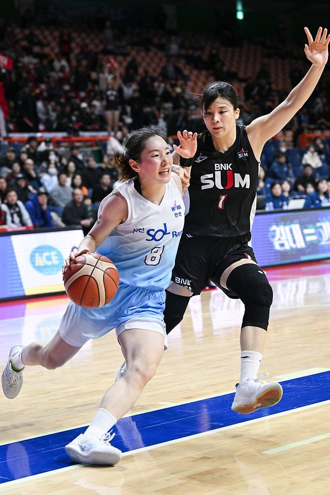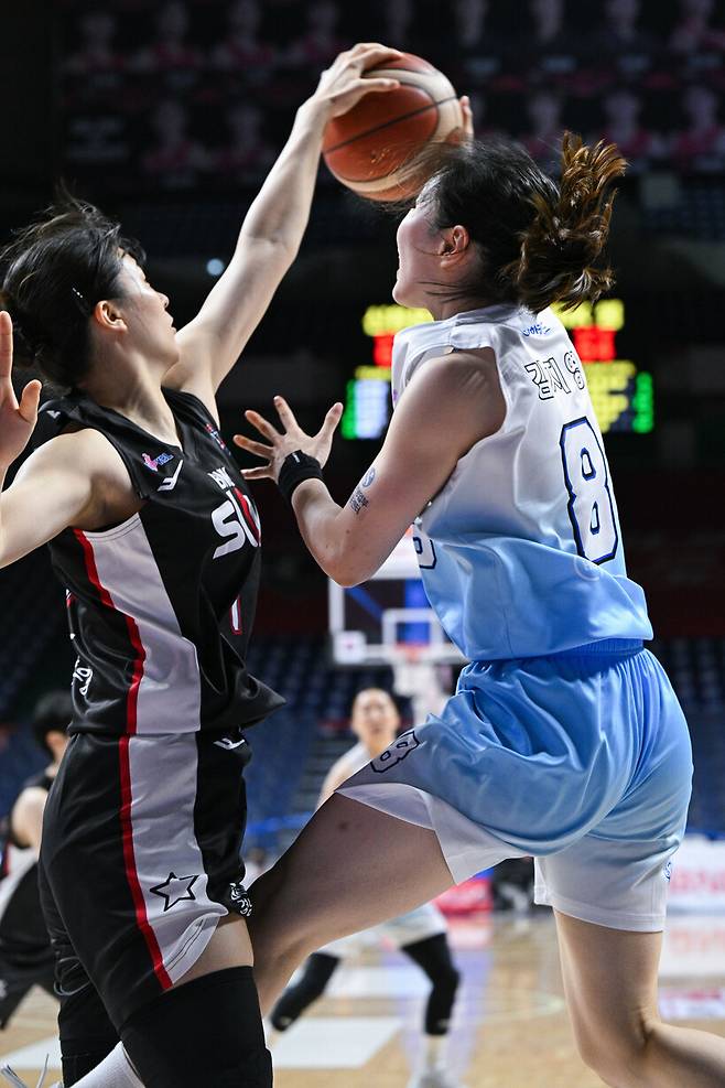 전반전에만 8점. 루이를 훌륭하게 뒷받침한 김지영의 노력이 없었다면, 신한은행은 어렵게 전반전을 끌고 갔을 것이다.