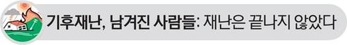 그래서일까. 기후위기를 막기 위해 논의하고 실천하는 정치사회적 움직임은 많다. 지난 기획시리즈도 그 일환이었으며 우리동네 이상기후 ‘현상’에 초점을 뒀다. 정작 기후위기로 인해 심각한 자연재난을 겪은 이들의 ‘그후’는 생각하지 못한 채.