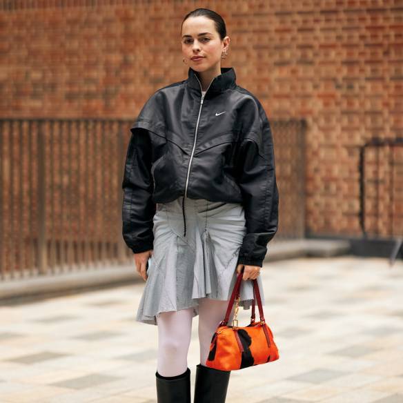 겨울에도 쇼츠와 스커트를 자유롭게 즐길 수 있게 해주는 고마운 아이템, 타이츠. 여기에 조금 더 온기를 더하고 싶다면 니트처럼 포근한 소재의 슬라우치 양말이나 레그 워머를 적극 활용해 보세요. 단순히 보온성을 높이는 역할을 넘어, 과감히 드러낸 다리 실루엣에 리듬을 더해주는 장치가 되어줄 수 있어요. 따뜻한 소재와 시어한 타이츠가 만들어내는 질감의 대비 또한 겨울에만 누릴 수 있는 스타일링의 묘미!