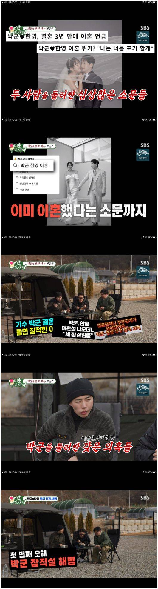 괴산에서 추운 겨울 텐트에 살고 있는 박군을 찾아온 건 임원희와 이상민이었다. 이들은 4년 전 한영에게 프러포즈하는 박군을 도왔었다. 그러나 근래 박군과 한영 부부를 둘러싸고 이혼, 불화, 별거 뉴스가 퍼져나왔다. 어머니들은 "나도 그 소식 들었다"라며 걱정스럽게 반응했다.