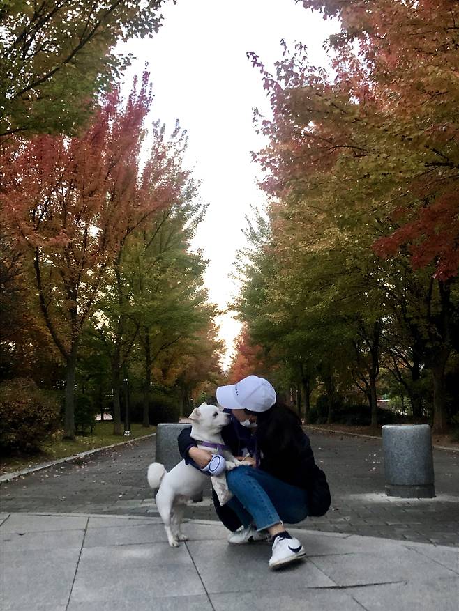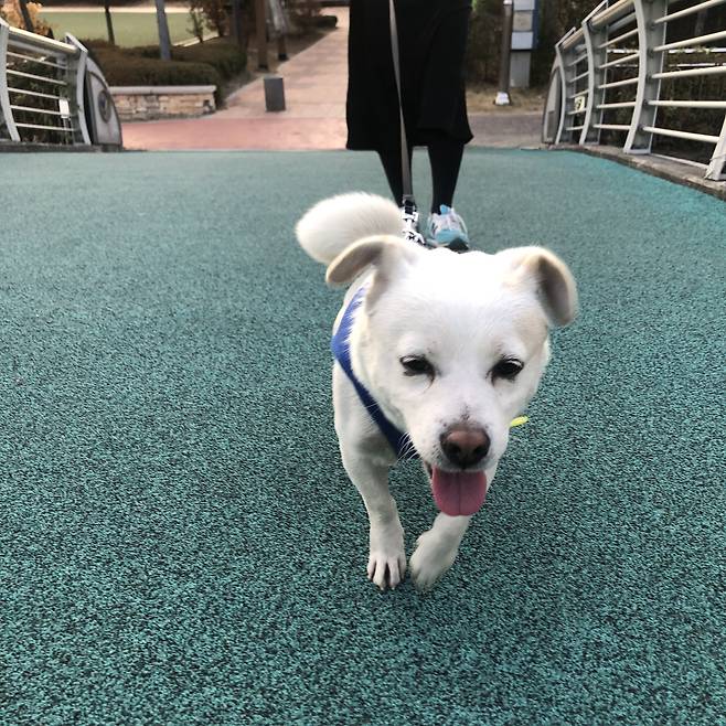 | ▲ 소망엄마와 산책하며 신난 소망이(입양 전). |