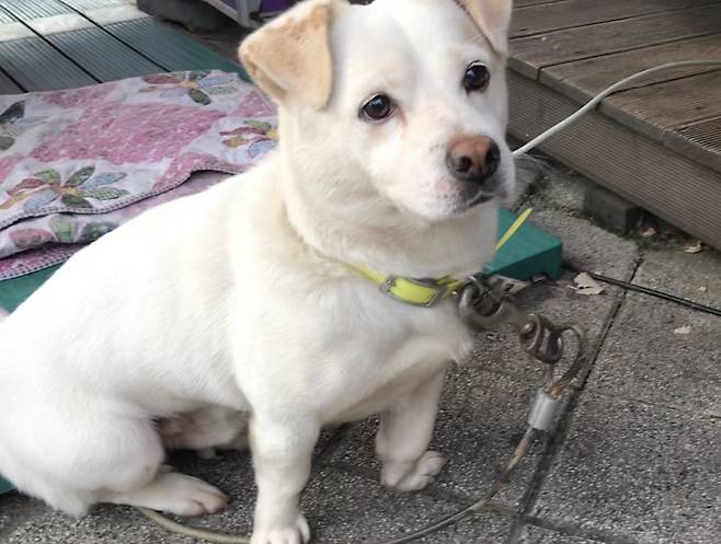 | ▲ 편의점 앞에 짧고 무거운 쇠목줄에 묶여 있었던 소망이. |
