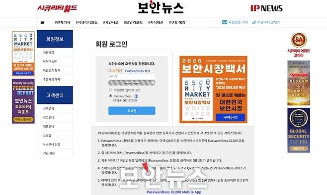 ▲보안뉴스의 패스워드리스 로그인 방식 [출처: 보안뉴스]