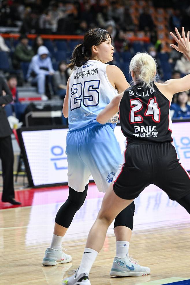 4쿼터까지 25점 8리바운드를 기록한 루이. 두 번의 연장전에서 11점(3리바운드)을 추가, 추격하는 BNK에 찬물을 끼얹었다.