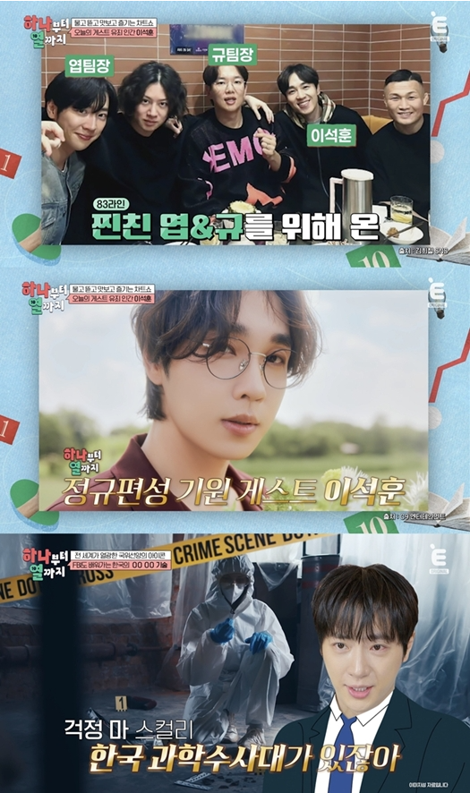 19일 밤 8시 방송되는 티캐스트 E채널 ‘하나부터 열까지’에서는 장성규와 이상엽, 그리고 스페셜 게스트 이석훈이 함께해 ‘전 세계가 열광한 국위선양의 아이콘’을 주제로 불꽃 튀는 순위 경쟁을 펼친다. 장성규는 “셋이 친구가 된 이후로 같은 방송에서 한 화면에 나오는 건 처음이다. 기념비적인 날”이라고 말해 분위기를 달군다.