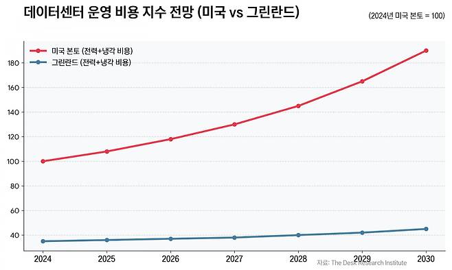 그린란드는 연중 영하권 기온을 유지하는 ‘천연 냉각기’다. 서버 냉각 비용을 획기적으로 줄일 수 있다. 동시에 빙하 아래에는 막대한 수력·지열 자원이 매장돼 있다. 재생에너지 발전에 최적의 조건을 갖춘 지역이다. 최근 CSIS와 아틀란틱 카운슬 보고서는 그린란드를 “미국 빅테크 전용 데이터센터 자치구(Potential AI Sovereign Zone)”로 규정했다. 군사 기지가 아니라, 연산 기지라는 의미다.