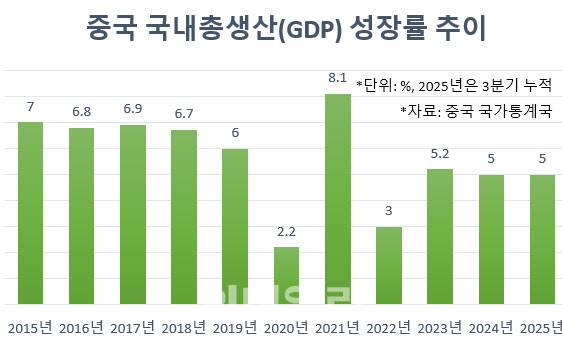 [베이징=이데일리 이명철 특파원] 중국 경제가 2024년에 이어 지난해에도 5%의 성장률을 달성했다. 미·중 관세 전쟁, 내수 침체에 등 대내외 불확실성이 지속됐음에도 수출이 호조를 보이며 전체 경제 성장을 이끌었다. 다만 중국 내 소비와 투자가 갈수록 위축되고 있어 올해 본격적인 저성장 위기에 직면했다는 지적이 나온다.