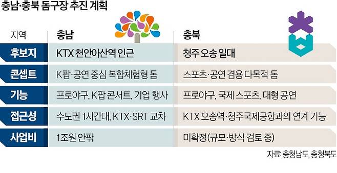 충청남도는 천안아산역 인근에 'K팝 복합체험형 돔구장'을 내세웠고, 충청북도는 청주 오송에 다목적 돔구장을 검토 중이다.
