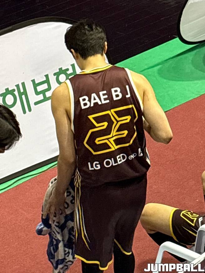 팀 동료들이 모두 한글 유니폼을 입고 나선 가운데, 배병준만 EASL(동아시아 슈퍼리그) 영문 유니폼을 착용하고 코트에 등장했다.