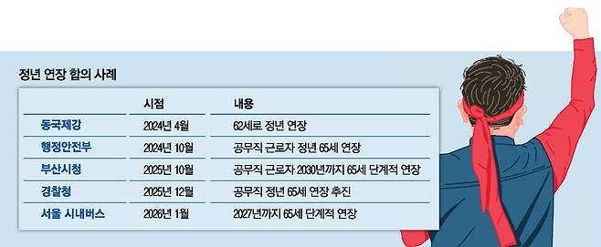 노동계의 '65세 정년 연장' 요구가 거세질 전망이다. 공공 분야에서 정년을 65세로 연장하는 사례가 잇달아 나오는 가운데 민간 분야인 서울 시내버스 노사가 단계적 65세 연장에 합의하면서 향후 동등한 수준의 요구를 하는 노조 목소리가 높아질 것으로 보인다.