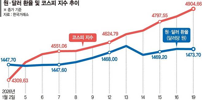 원화약세에도 오천피 넘보는 코스피… 따로 노는 주가·환율