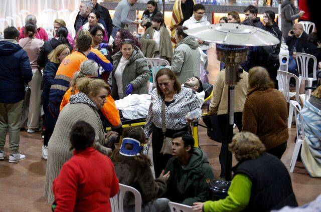 부상자들이 같은 날 아다무스의 한 텐트로 옮겨져 치료받는 모습. 이날 승객 484명을 실은 고속열차 두 대가 탈선·정면충돌해 기관사 1명을 포함해 최소 39명이 사망하고 152명이 부상을 입었다. 탈선 원인은 아직 밝혀지지 않았다.