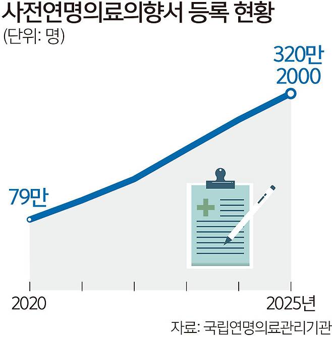 19일 국립연명의료관리기관에 따르면 지난해 12월 말 기준 사전연명의료의향서 등록자는 320만1958명으로 집계됐다.