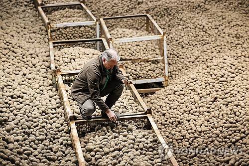 epa12662157 Hans-Joachim von Massow, Managing Director of Osterland of the Saxon agricultural company Osterland Agrar GmbH, checks the stocks of harvested potatoes in Frohburg, Germany, 19 January 2026. After a record harvest, 4,000 tons of potatoes were not purchased by retailers, they are now being distributed to food banks for the needy in Berlin and Saxony. The delivery is being financed by donations. Private initiatives can also pick up potatoes. EPA/HANNIBAL HANSCHKE