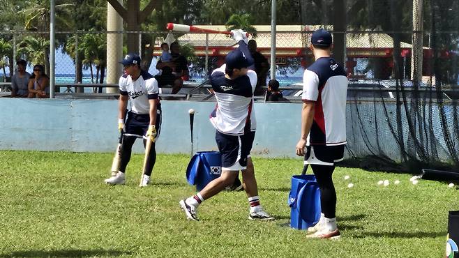 대표팀이 사이판에 캠프를 꾸리고 일주일째인 지난 16일, 김도영과 안현민이 훈련장 한편에 나란히 앉았다. 지난 인연이 그리 깊지는 않지만, 대표팀에서 만나자마자 부쩍 친해졌다. 인천공항 출국장부터 함께 움직였다. 사이판에서도 같은 훈련조로 배치됐다. 서로의 타구를 보며 감탄하고, 그날의 컨디션을 묻고는 한다.