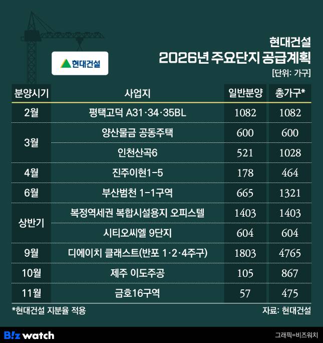 현대건설은 지방에서 4213가구를 선보인다. 이 중 청약 시장에는 1844가구가 나올 예정이다.