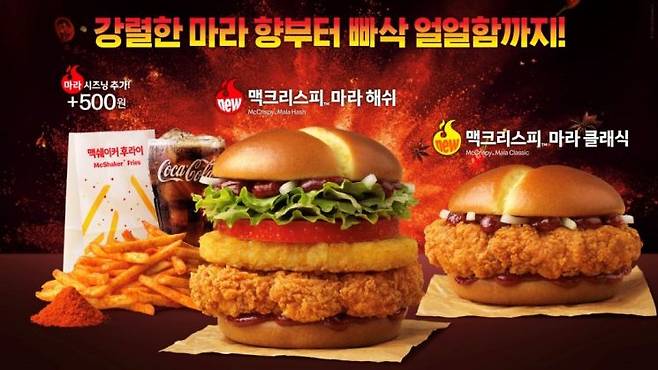 한국맥도날드가 강렬한 마라의 매력을 담은 신메뉴 '맥크리스피 마라 버거' 2종(맥크리스피 마라 해쉬 버거, 맥크리스피 마라 클래식 버거)을 출시한다고 20일 밝혔다.