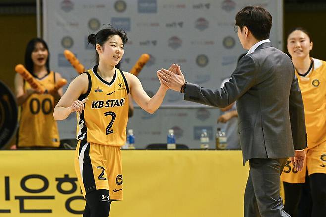 19일 청주 KB스타즈 챔피언스 파크에서 열린 BNK금융 2025~2026 여자프로농구 KB스타즈와 용인 삼성생명의 맞대결. 김완수 감독은 허예은에 대한 격려가 담긴 말을 전했다.