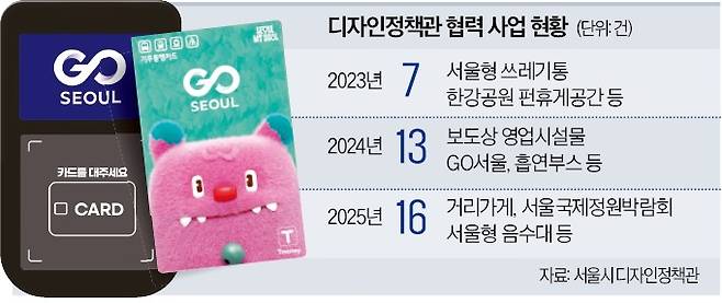 디자인정책관이 힘을 보탠 대표 정책은 지난해 도입된 기후동행카드다. 국내 최초의 대중교통 월정액 무제한 이용권으로, 출시 3개월 만에 판매 100만 장을 돌파했다. 지난해 11월 기준 하루평균 이용자도 약 72만 명에 달해 목표치인 50만 명을 훌쩍 넘겼다.