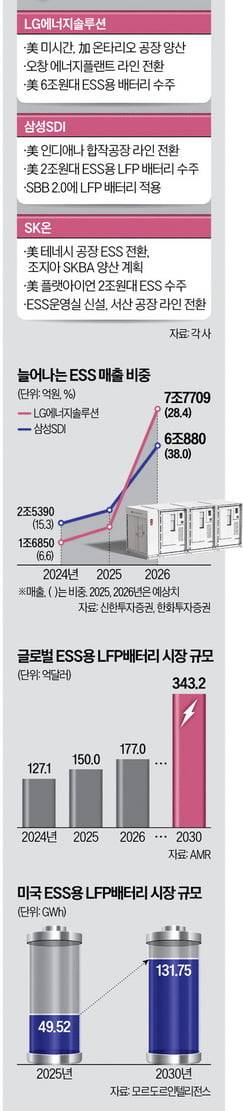 반면 ESS 시장은 빠르게 성장 중이다. 마이크로소프트(MS)·구글·아마존·메타 등 빅테크의 데이터센터 투자가 늘면서 전력 안정화를 위해 바로 옆에 설치하는 ESS 수요가 폭증하고 있어서다. 글로벌 컨설팅업체 맥킨지는 미국 ESS 누적 설치 용량이 2024년부터 매년 28%씩 증가할 것으로 전망했다. 미국 정부가 중국산 ESS 수입을 사실상 막은 것도 호재다. 미국 정부는 중국산 ESS에 부과하는 관세를 30.9%에서 지난해 최대 82.4%로 인상했다. 미국 ESS 시장의 90% 이상을 장악한 CATL, 비야디(BYD) 등 중국 업체들이 더 이상 발 붙이기 힘들어졌다.