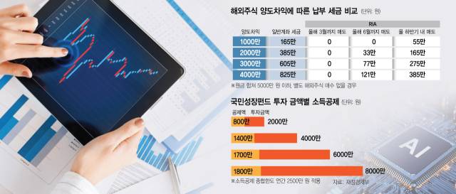 서학개미를 국내 주식시장으로 유인하기 위한 국내시장복귀계좌(RIA) 혜택도 구체화했다. RIA는 양도차익이 높을수록, 매도 시점이 이를수록 더 큰 절세 혜택을 볼 수 있지만 RIA에 돈을 1년간 묶어놓아야 한다는 점이 부담이 될 수도 있다.