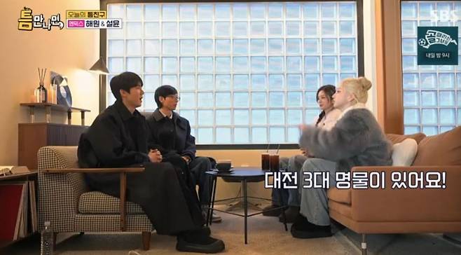 20일 SBS '틈만 나면'에선 엔믹스 해원과 설윤이 틈 친구로 출연해 대전 틈새 여행을 함께했다.
