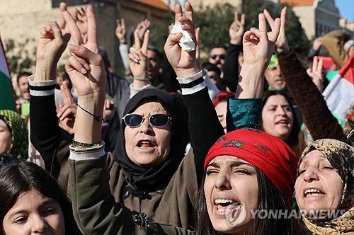 epa12664381 Protesters from the Kurdish community flash victory signs as they shout slogans during a protest against the Syrian government's military operation in Syria, outside the United Nations Economic and Social Commission for Western Asia (UN-ESCWA) headquarters in Beirut, Lebanon, 20 January 2026. Thousands of civilians fled the Sheikh Maqsoud and Ashrafieh neighborhoods of Aleppo, after deadly clashes erupted between Syrian government forces and the Kurdish-led Syrian Democratic Forces (SDF). EPA/WAEL HAMZEH