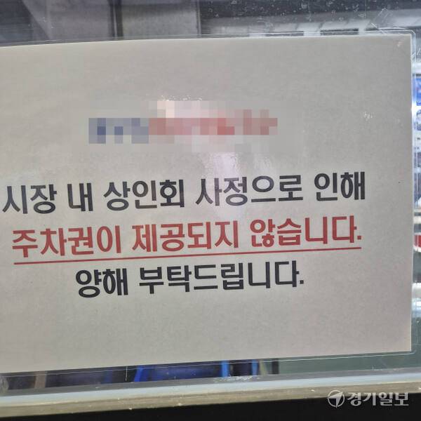 이처럼 손님들의 주차권 문의가 이어지자 결국 식당 주인이 안내 문구를 내걸었다. ‘시장상인회 사정으로 주차권이 제공되지 않습니다. 양해 부탁드립니다.’