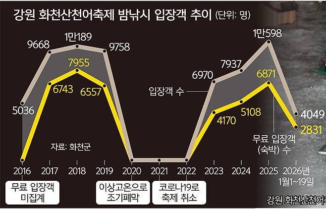 “자고 나면 밤낚시가 공짜?" 금 1돈에 강태공 환호…화천 산천어축제, 대박난 비결 [밀착취재]